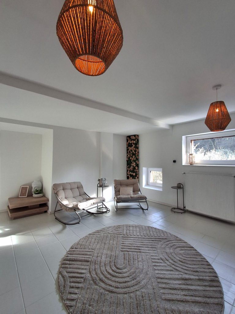 Für noch tiefere Entspannung sorgt unser Ruheraum mit eigenem Wasserspiel. Sanftes Plätschern trifft auf eine ruhige, wohltuende Atmosphäre – der perfekte Ort, um abzuschalten, zu lesen oder einfach nur die Stille zu genießen.